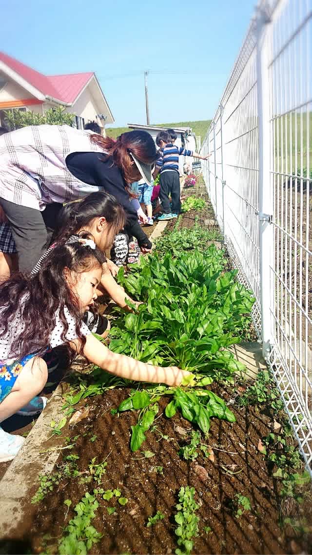 保育所の菜園に植えていたほうれん草をみんなで収穫しましたよ~(^-^)