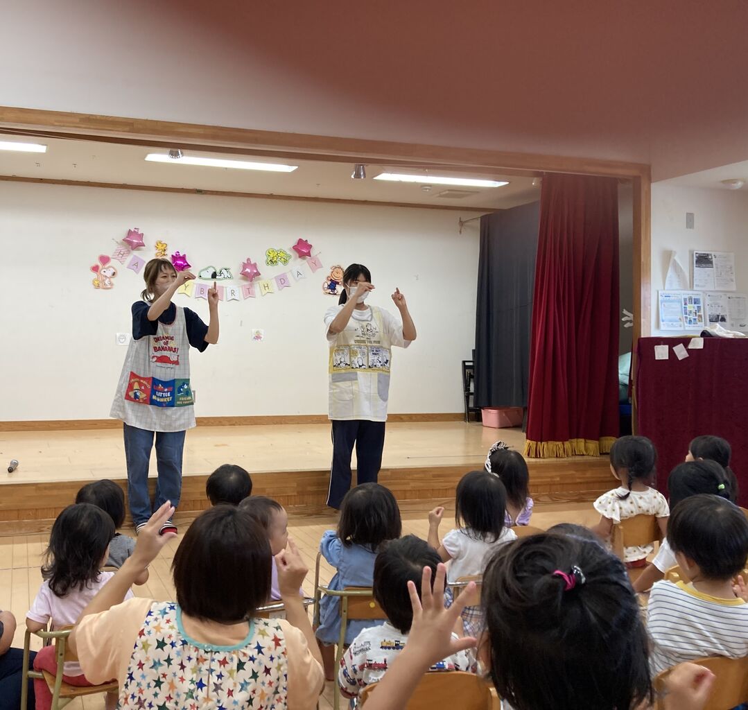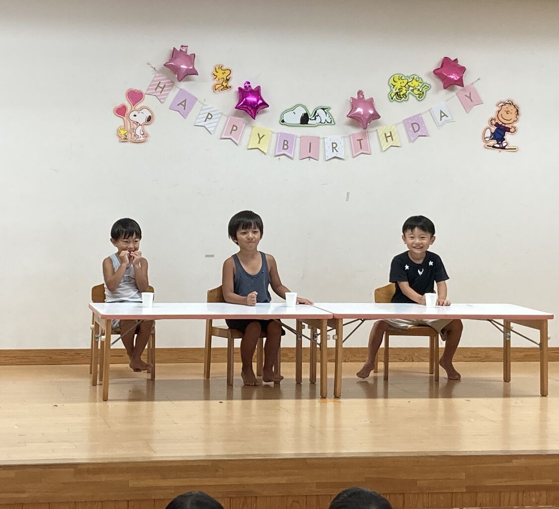 2025年08月22日 8月のお誕生会♪ 8月22日は8月生まれのお誕生会でした。8月生まれのお友だちは1名! 壁に貼ってある質問カードを取り、はきはきと答えていてとても上手でした(*^^*) 職員の出し物は、「オオカミと少年」の劇と「噓つきオオカミは誰だ~」のゲームをしましたよ。3人のうち1人だけが辛い、すっぱいものを口にして誰が口にしたのかをみんなで当てるゲームです。 職員も子ども達も大盛り上がりでしたよ~(^^)/ 8月生まれのお友だち 💛HAPPY BIRTHDAY💛 < 前の記事次の記事 > コメント コメントフォーム 名前 コメント 記事の評価 リセット リセット 顔 星 情報を記憶 コメントを投稿する